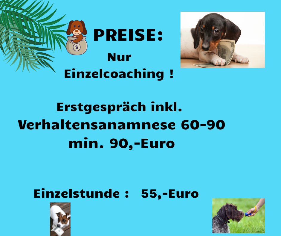 - Basisübungen wie: Namenstraining, Sitz, Platz, Aus, Hier